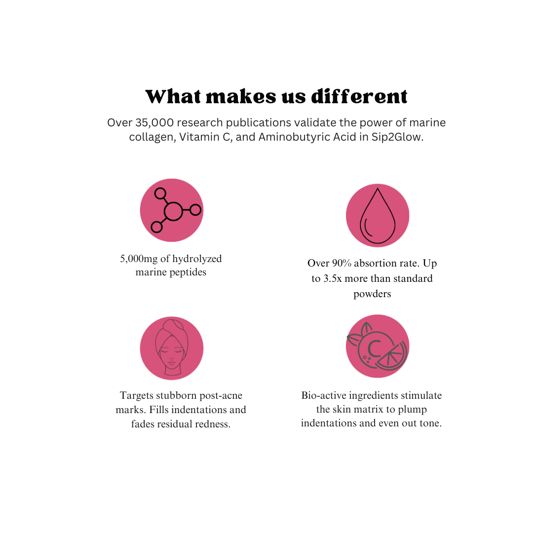 Sip2Glow contains high-quality marine collagen peptides sourced from fish. Marine collagen is known for having a smaller molecular structure, which allows for better absorption compared to some other collagen types.